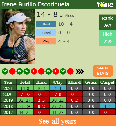Burillo Escorihuela has a 14-8 win-loss record in 2021, 4-4 on clay (See FULL STATS).