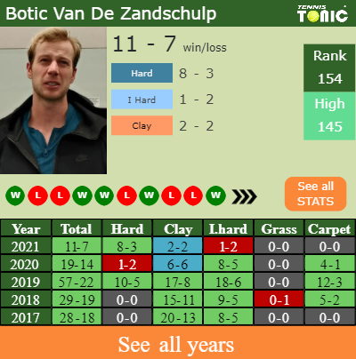 The Dutch has a 11-7 win-loss record in 2021, 2-2 on clay (See FULL STATS).