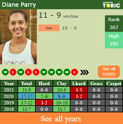 In terms of her career, Diane has an overall 56-45 record. She has a positive 46-32 record on clay.