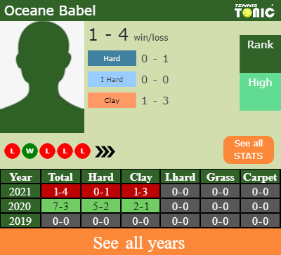 Babel has an aggregate 1-4 win-loss record in 2021, 1-3 on clay (See FULL STATS).