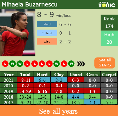 Buzarnescu has a composed 8-11 win-loss record in 2021, 2-2 on clay (See FULL STATS).