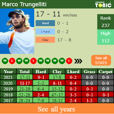 Marco has an aggregate 17-11 win-loss record in 2021, 17-8 on clay (See FULL STATS).