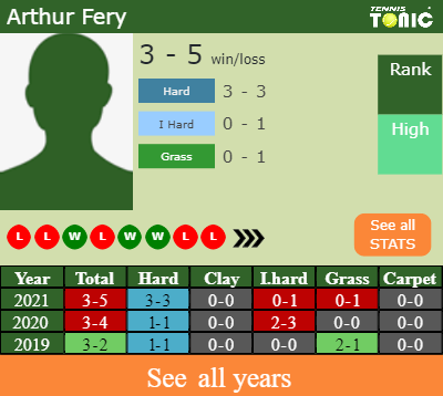 Fery has an aggregate 3-5 win-loss record in 2021, 0-1 on grass (See FULL STATS).