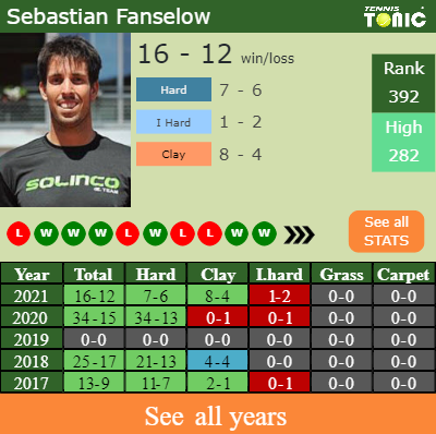 Fanselow has a composed 16-12 win-loss record in 2021, 8-4 on clay (See FULL STATS).