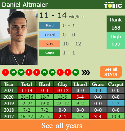 Altmaier has an overall 11-14 win-loss record in 2021, 1-1 on grass (See FULL STATS).