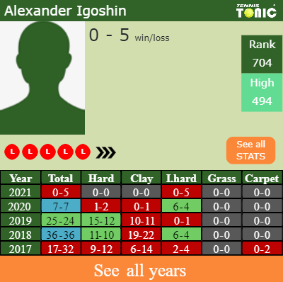 Alexander has a composed 0-5 win-loss record in 2021, 0-0 on hard (See FULL STATS).