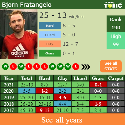 Fratangelo has an overall 25-13 win-loss record in 2021, 8-5 on hard (See FULL STATS).