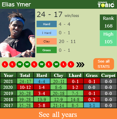 Talking about his overall career, Elias has an overall 286-222 record. He has a negative 47-57 record on hard.