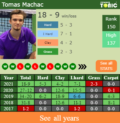 Tomas has an aggregate 18-9 win-loss record in 2021, 4-2 on clay (See FULL STATS).