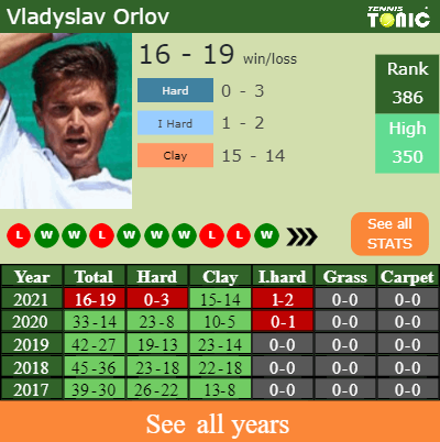The Ukrainian has an aggregate 16-19 win-loss record in 2021, 15-14 on clay (See FULL STATS).