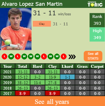 In terms of his career, Alvaro has an overall 188-83 record. He has a positive 167-73 record on clay.