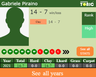 Gabriele has an aggregate 14-7 win-loss record in 2021, 14-7 on clay (See FULL STATS).