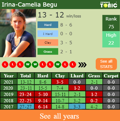 The Romanian has a composed 13-12 win-loss record in 2021, 8-6 on hard (See FULL STATS).