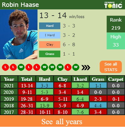 There is no head to head record between Robin Haase and Borna Gojo since this will be the first time that they will clash against each other in the main tour.