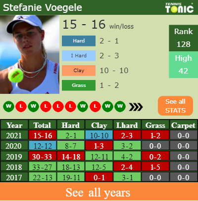Voegele started her run at this tournament from the qualifications. In the main draw, she has conceded 1 set in the tournament to win 53% of the points she played.