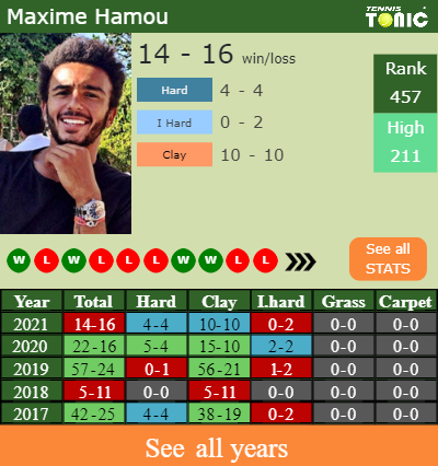 Talking about his overall career, Hamou has an overall 310-194 record. He has a positive 25-20 record on hard.