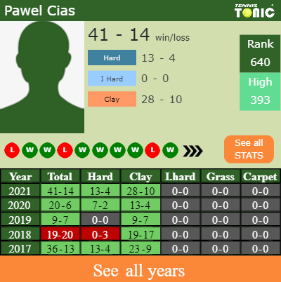There is no head to head record between Stefano Travaglia and Pawel Cias since this will be the first time that they will square off in the main tour.