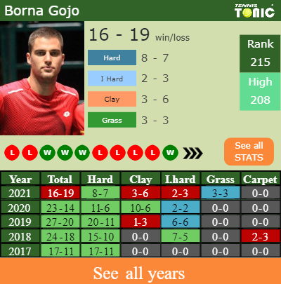 The Croatian has an overall 16-19 win-loss record in 2021, 2-3 on indoor hard courts (See FULL STATS).