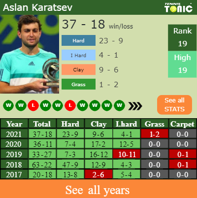 Aslan has an overall 37-18 win-loss record in 2021, 4-1 on indoor hard courts (See FULL STATS).