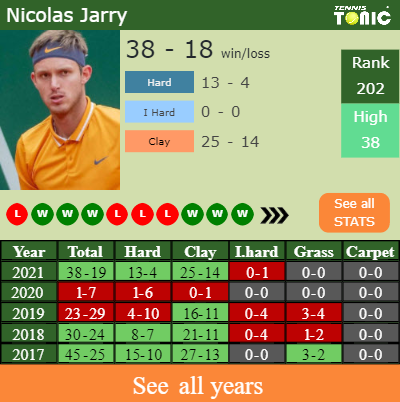 Jarry has an aggregate 38-19 win-loss record in 2021, 25-14 on clay (See FULL STATS).