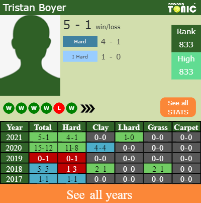 Tristan has an aggregate 5-1 win-loss record in 2021, 1-0 on indoor hard courts (See FULL STATS).