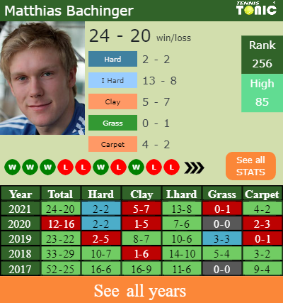 Talking about his overall career, Bachinger has an overall 554-450 record. He has a positive 153-110 record on indoor hard courts.