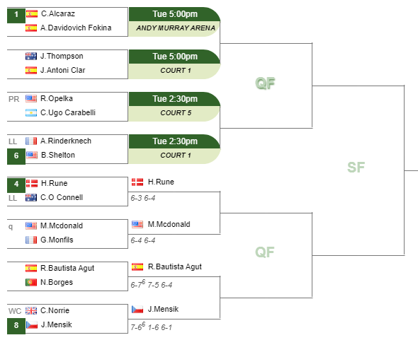 - Daniel EvansEvans – Frances TiafoeTiafoe (7-5 6-2)