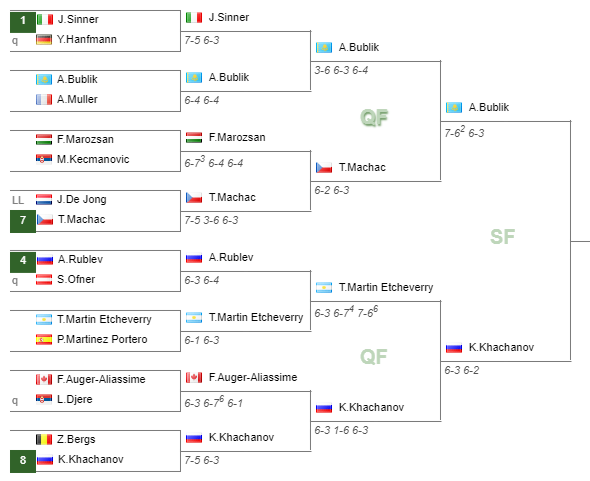 - Alexander BublikBublik – Tomas MachacMachac (7-6(2) 6-3)