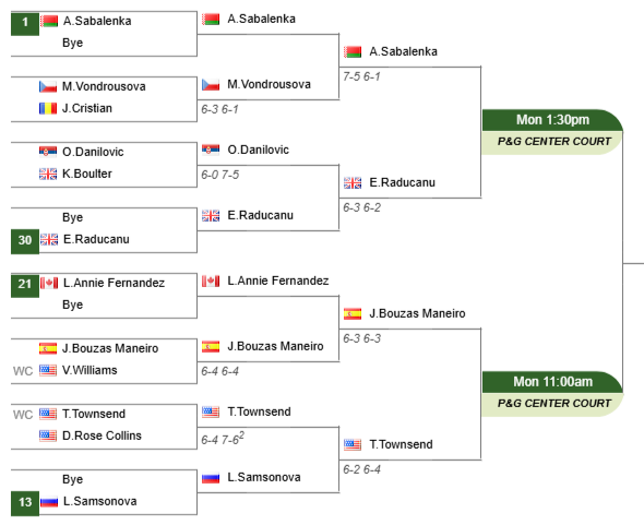 - Cori GauffGauff – Xinyu WangWang (6-3 6-2)