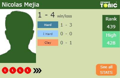The Colombian has a 1-4 win-loss record in 2019, 1-3 on hard (See FULL STATS).