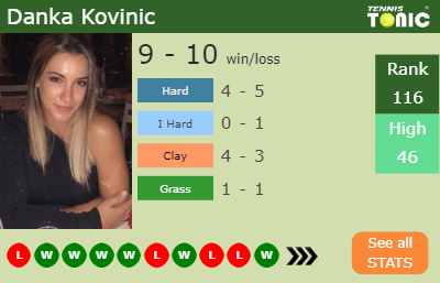 Kovinic has a 9-10 win-loss record in 2019, 4-5 on hard (See FULL STATS).