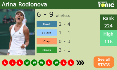 Rodionova has a 6-9 win-loss record in 2019, 2-4 on hard (See FULL STATS).