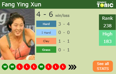 The Chinese has a 4-6 win-loss record in 2019, 3-4 on hard (See FULL STATS).