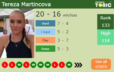 Martincova has a 20-16 win-loss record in 2019, 7-4 on hard (See FULL STATS).