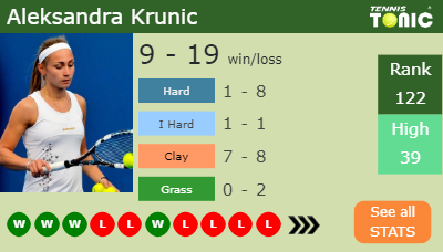 There is no head to head record between Aliaksandra Sasnovich and Aleksandra Krunic since this will be the first time that they will square off in the main tour.However, they played each other in challengers. Therefore their H2H is 1-0 for Krunic.