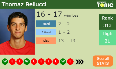 Bellucci’s best result of the current year was reaching the semi-finals in the Tunis Challenger and the Santiago Challenger.