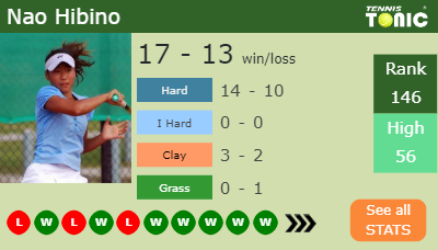 Hibino has a 17-13 win-loss record in 2019, 14-10 on hard (See FULL STATS).