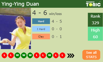 Duan has a 4-6 win-loss record in 2019, 4-5 on hard (See FULL STATS).