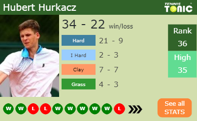 Hurkacz has a 34-22 win-loss record in 2019, 2-3 on I.hard (See FULL STATS).