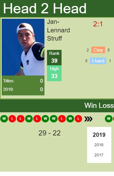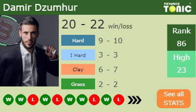 Dzumhur has a 20-22 win-loss record in 2019, 3-3 on I.hard (See FULL STATS).