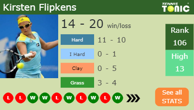 Flipkens has a 14-20 win-loss record in 2019, 11-10 on hard (See FULL STATS).