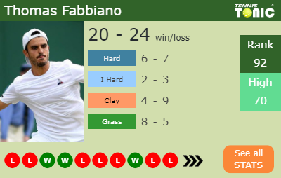 Fabbiano’s best result of the current season was reaching the semi-finals in Eastbourne.