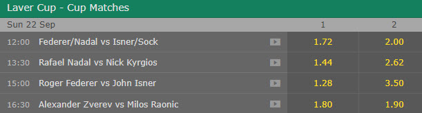 The 2019 Laver Cup is at the last stage wit many exciting matches on the way. Team Europe is currently leading 7-5, and they need to win 2 matches of 4 on Sunday. Since every win in day 3 brings 3 points in this competition (1 point per win in day 1, and 2 in day 2), the top players are all in action.