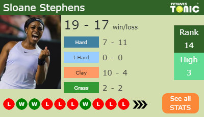 Stephens has a 19-17 win-loss record in 2019, 7-11 on hard (See FULL STATS).