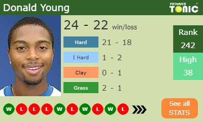 Young has a 24-22 win-loss record in 2019, 21-18 on hard (See FULL STATS).