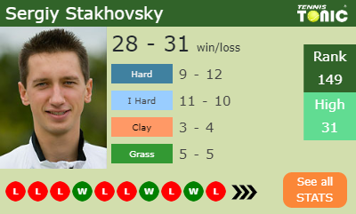 Stakhovsky has a 28-31 win-loss record in 2019, 11-10 on I.hard (See FULL STATS).