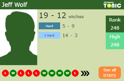 Jeff has a 19-12 win-loss record in 2019, 5-9 on hard (See FULL STATS).