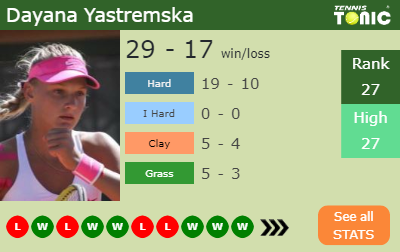 Dayana has a 29-17 win-loss record in 2019, 19-10 on hard (See FULL STATS).