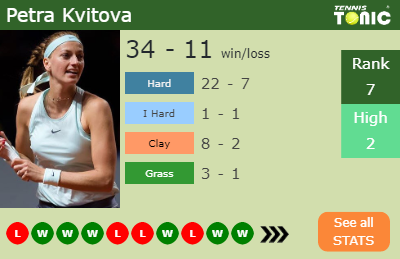 Kvitova has a 34-11 win-loss record in 2019, 22-7 on hard (See FULL STATS).