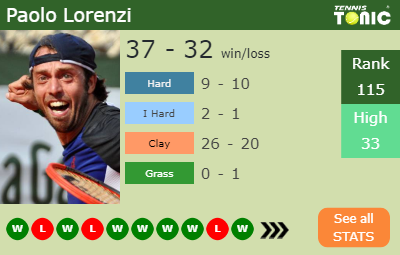 Paolo has a 37-32 win-loss record in 2019, 26-20 on clay (See FULL STATS).